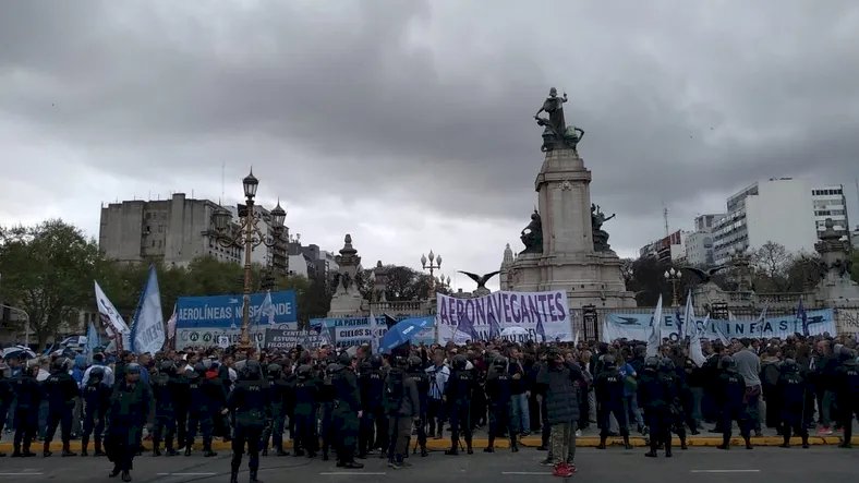 La marcha, convocada principalmente por Aeronavegantes, incluye al personal de cabinas, a la Asociación de Personal Aeronáutico (APA), la Asociación de Pilotos de Líneas Aéreas (APLA), la Unión del Personal Superior y Profesional de Empresas Aerocomerciales (UPSA), y ATE ANAC.
