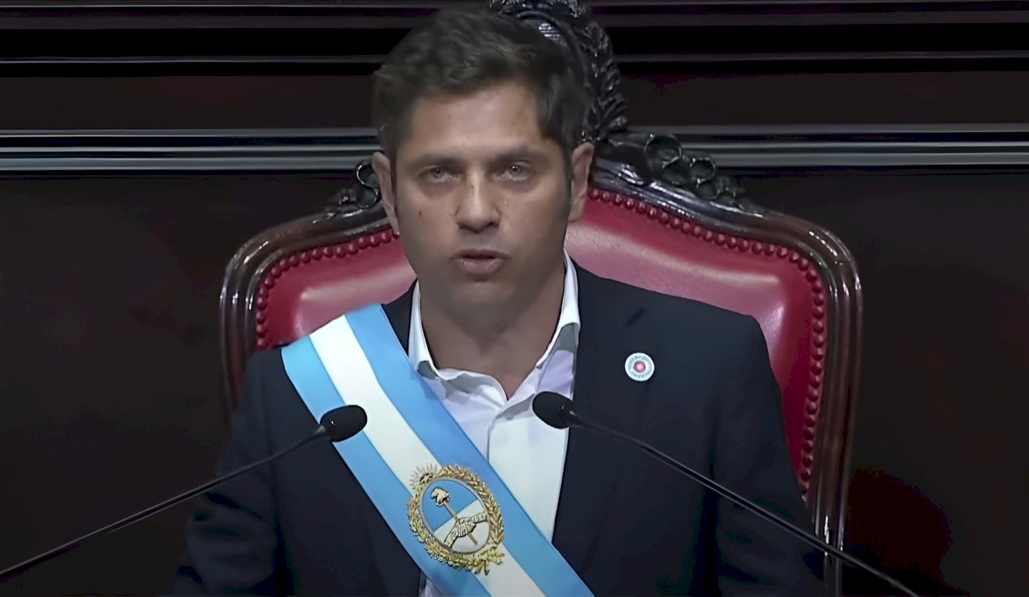 En el texto, Kicillof solicitó reprogramar para este lunes la pronunciación de su discurso ante la posibilidad de que la Asamblea Legislativa local se superpusiera con la nacional, imposibilitando su participación en la ceremonia en el Congreso de la Nación, donde el presidente Javier Milei habló el viernes a las 21.