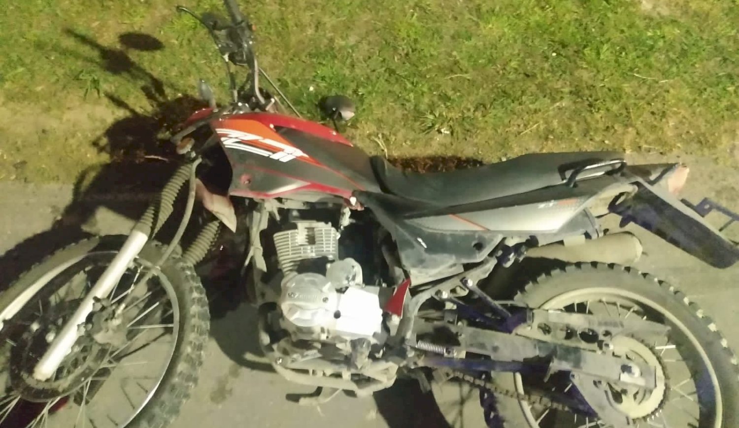 En dicha dirección, perdieron el control del vehículo tras una mala maniobra y colisionaron con un patrullero provocándole daños en su parte delantera (óptica, guardabarro y paragolpe). Sin heridas, fueron demorados y se constató que la moto tenía pedido de captura por ser robada.