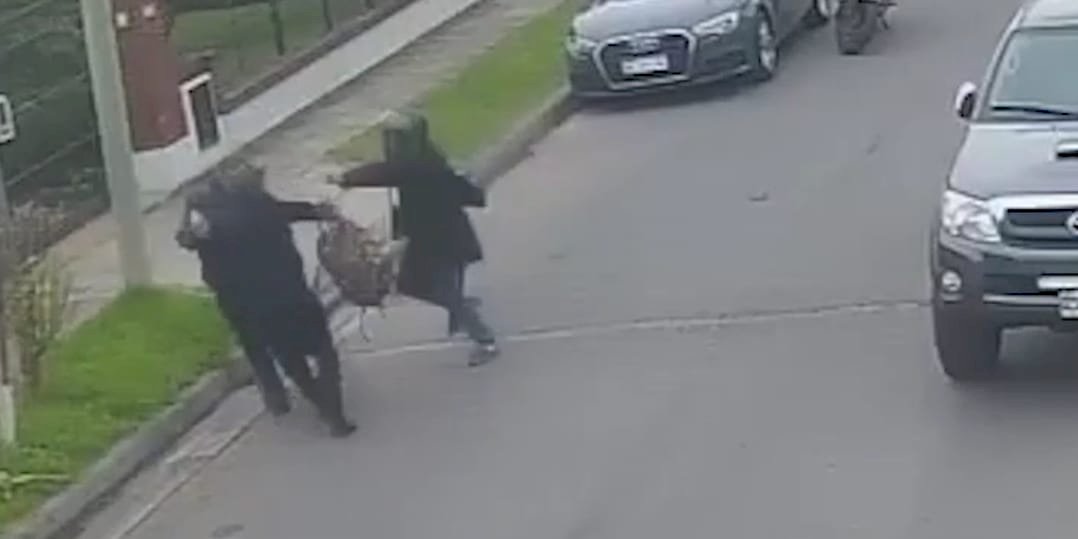 Alrededor de las 12hs, pese a que había movimiento de vecinos por la zona, dos motochorros sorprendieron a una familia que se encontraba con su auto estacionado. En las imágenes captadas por las cámaras de seguridad, puede verse que el resto de presentes corre para ponerse a salvo, por lo que el hombre quedó en medio del forcejeo con los malhechores.